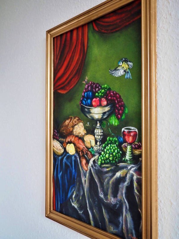 Ölgemälde-Unikat mit handgefertigtem Holzrahmen in Gold